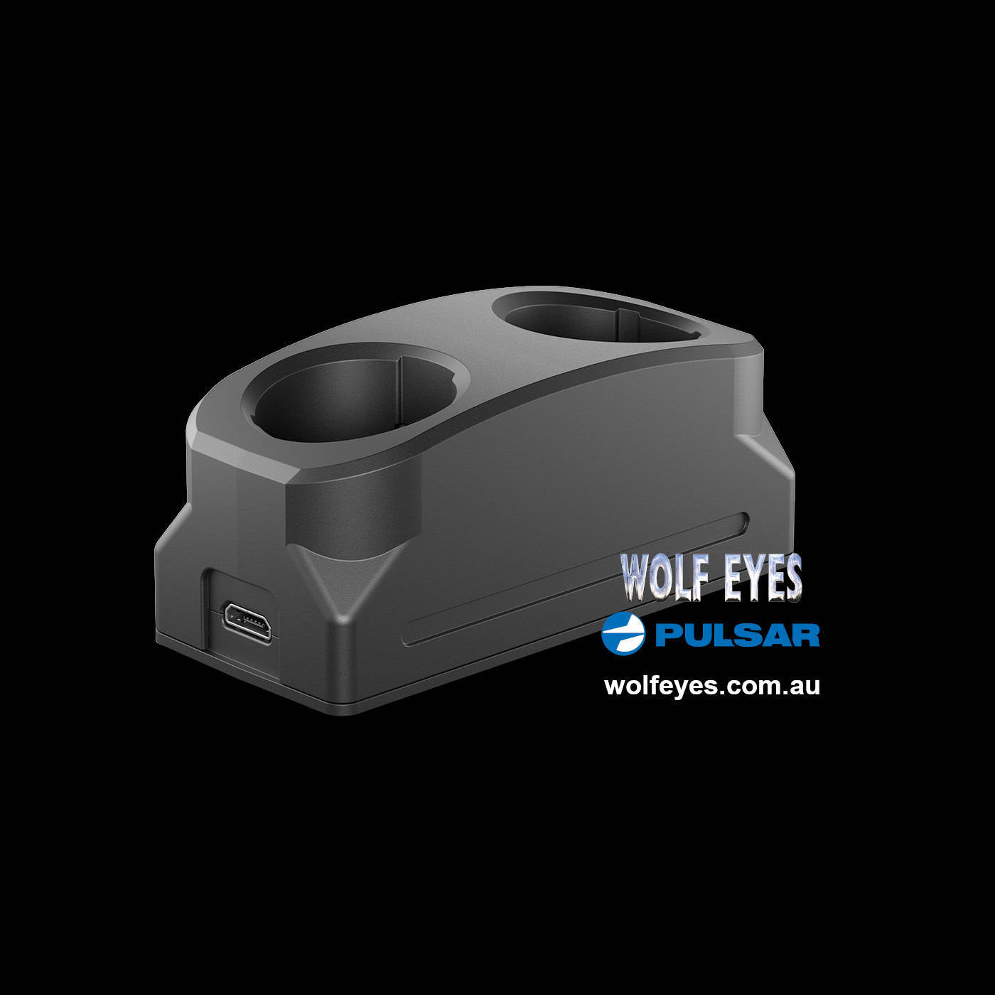 The Pulsar APS battery charger to charge your Pulsar APS2 and Pulsar APS3 batteries, either singularly or two at a time. The Pulsar APS battery charger is great for the Pulsar Axion KEY series which don't come with an external charger, or for those who want more than one charger, say for two locations. If you us an APS2 or APS3 battery, such as in the Axion series monoculars, Thermion and Thermion 2 scopes, or Digex the Pulsar APS battery charger may suit. The APS5 and APS5T cannot be charged on this charger. The APS Battery Charger is Genuine Pulsar and backed by our genuine warranty.