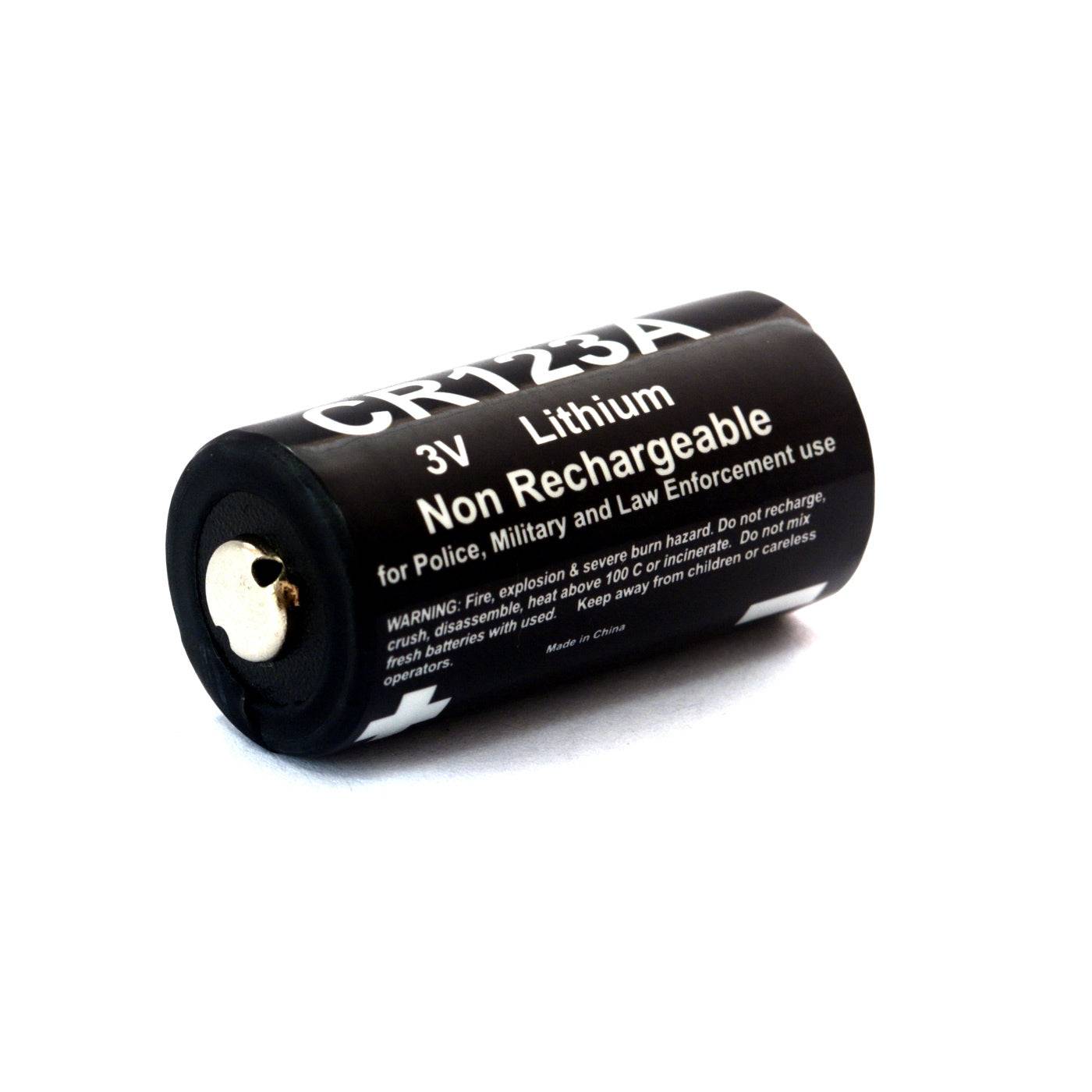 CR123A Kolt Battery in an 8 X CR123A battery pack for all your disposable 3 Volt CR123A lithium ion battery needs. These CR123A batteries work in cameras, rangefinders, communications gear, flashlights, friend or foe lights, torches or any device which requires 3 Volt CR123A batteries. Of course these CR123A batteries work well in headlamps & torches! Before rechargeable batteries came to the fore, most tactical torches used the CR123a battery as it has long shelf life and high specific power output, while being relatively readily available - it was also a favourite of various cameras. Two of the Kolt CR123A lithium batteries can be used instead of one of the rechargeable Wolf Eyes LRB168A or LRB168P batteries in our Wolf Eyes LED Torches or Wolf Eyes LED Headlamps. These torches and headlamps have been designed to accept the wider voltage range and so will work with either one of our LRB168A batteries or two CR123A disposable single use batteries. Great value in this CR123A 8 battery pack, but we also have a 40 CR123A pack and a bulk 100 CR123A pack for those heavy CR123A battery users. For the very heavy battery users we have a one thousand battery pack - bulk CR123A 1,000 batteries. The battery is marked extremely logically with red for positive and black for negative, so no mistakes by any member of your team. A well priced CR123A battery compared to the double digit prices asked at the large supermarket chains for CR123A lithium ion batteries. These are guaranteed GENUINE KOLT CR123A lithium Ion batteries.