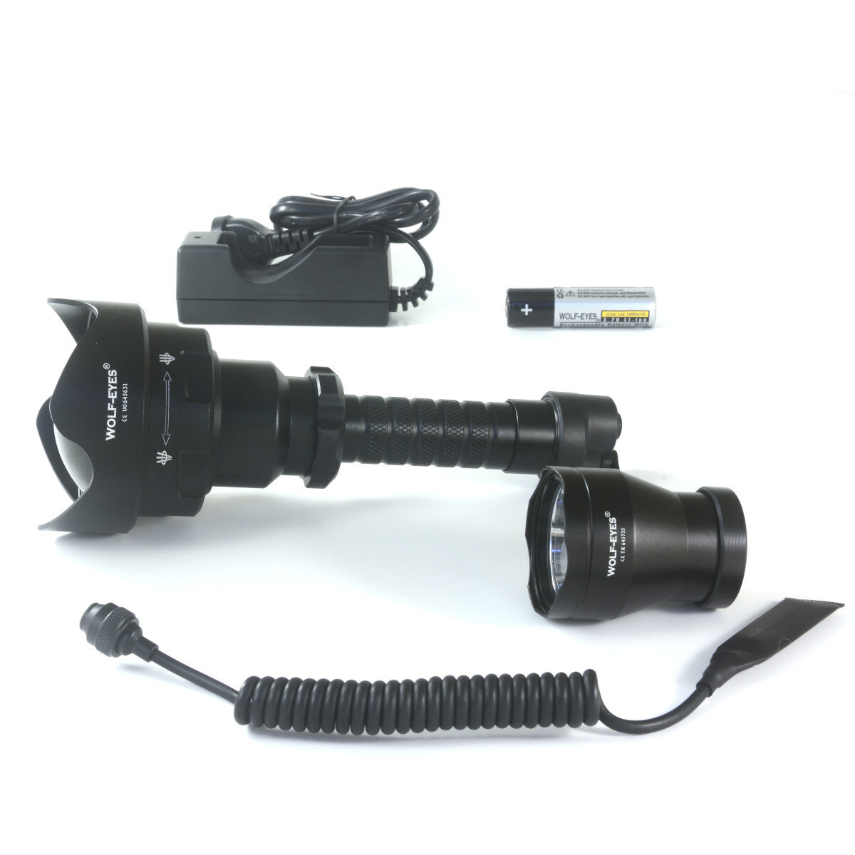 The Wolf Eyes Seal Hunting Ultra is based on the Wolf Eyes Seal Hunting torch which we designed from the ground up to be the best possible torch we could produce for the man on the land or those who like to control ferals or the general torch user who needs distance. It starts with the 25.4mm (1”) torch body size which suits almost all mounts, this 6061-T6 aluminium alloy body is lined with our brass Thermal Transfer Tube to wick damaging heat away from your high power LED. We then have a huge 83mm aspheric LED head, this can reach out to 600 metres plus so you can see those foxes & wild dogs or check on the front gate or sheds. If you have a vermin or security problem, this is the torch head for you. Also there is the smaller 50mm reflector LED torch head, giving a nice spot surrounded by flood out to 150 metres, great for rabbits or pigs in the lignum – or just for using as a general torch. Some get this torch just for vermin control, others for security, while some use it for both work and play. Many trades people use this torch during the week for work, then for themselves on the weekend. The nice thing is the Seal Hunting Ultra can fulfil all those roles.